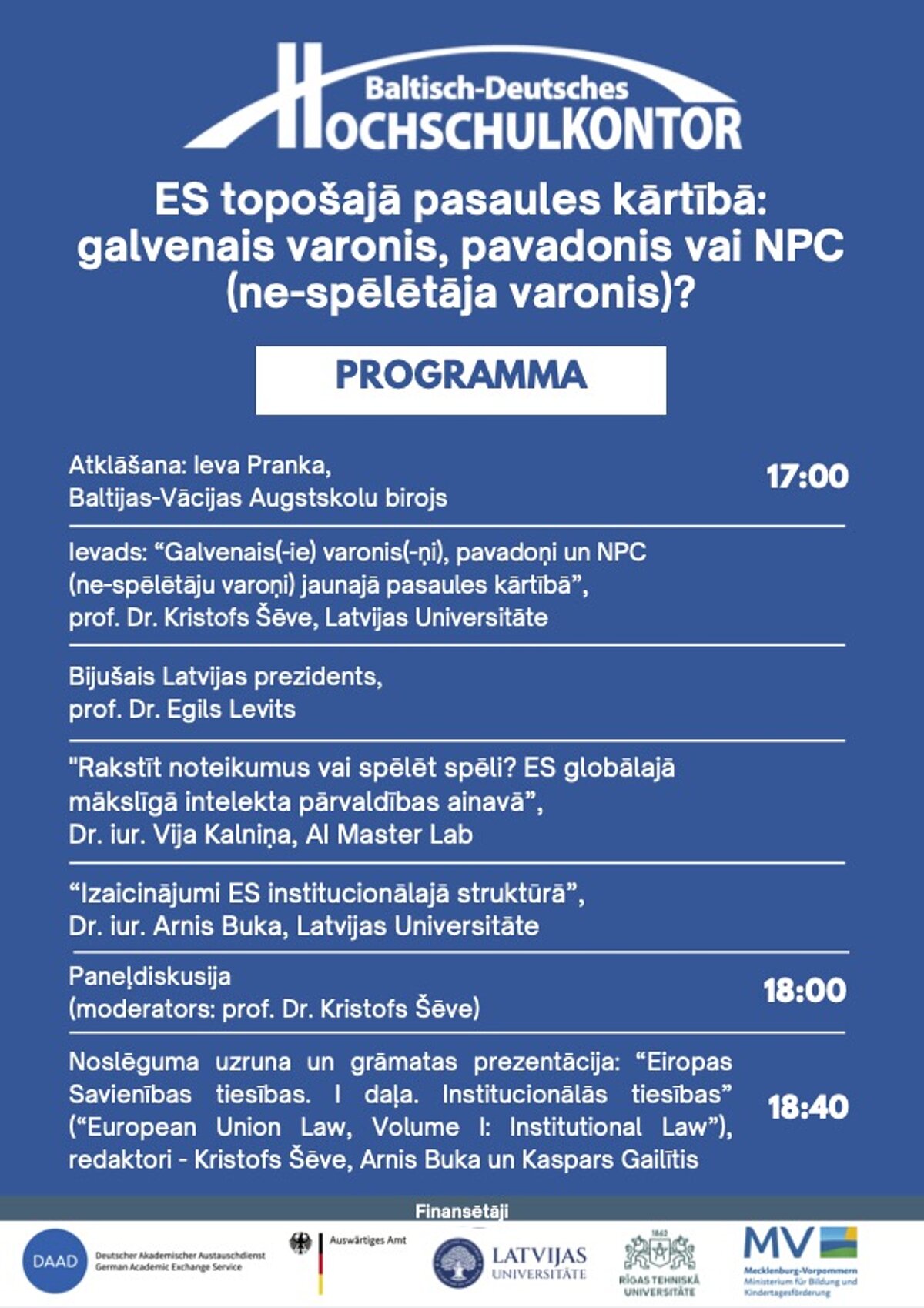 - Grāmatas prezentācija: Mag. iur. Kaspars Gailītis (ES Tiesas tulkotājs) un prof. Dr. Christoph Schewe.